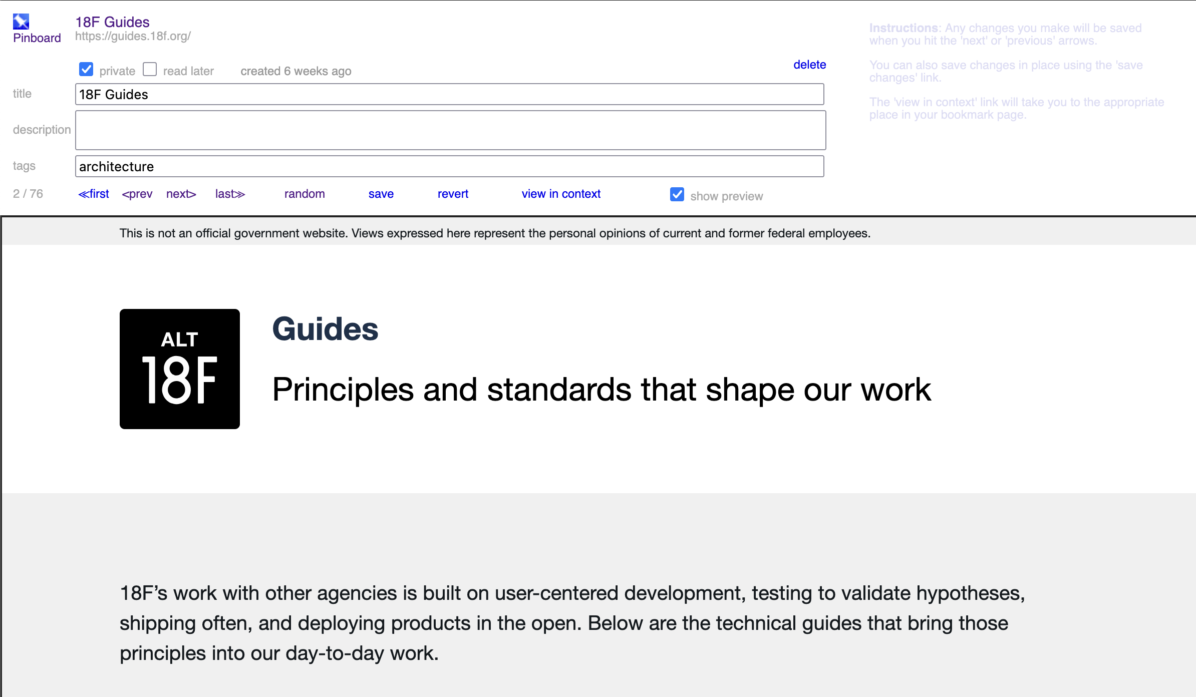 In early 2021 the Pinboard owner, Maciej, emailed all lifetime account members like myself and asked them to voluntarily convert to the annual subscription account model introduced in 2015. I took advantage of a deal he offered to pay up-front for 5 years in exchange for a notable discount. His position was twofold: costs to operate the service had risen over the years and additional recurring revenue would fund development of new features. Some of those new features did materialize, while others–like the v2 API–were never fully finished. I was now coming up on the end of my 5 year renewal and decided to look for alternatives.